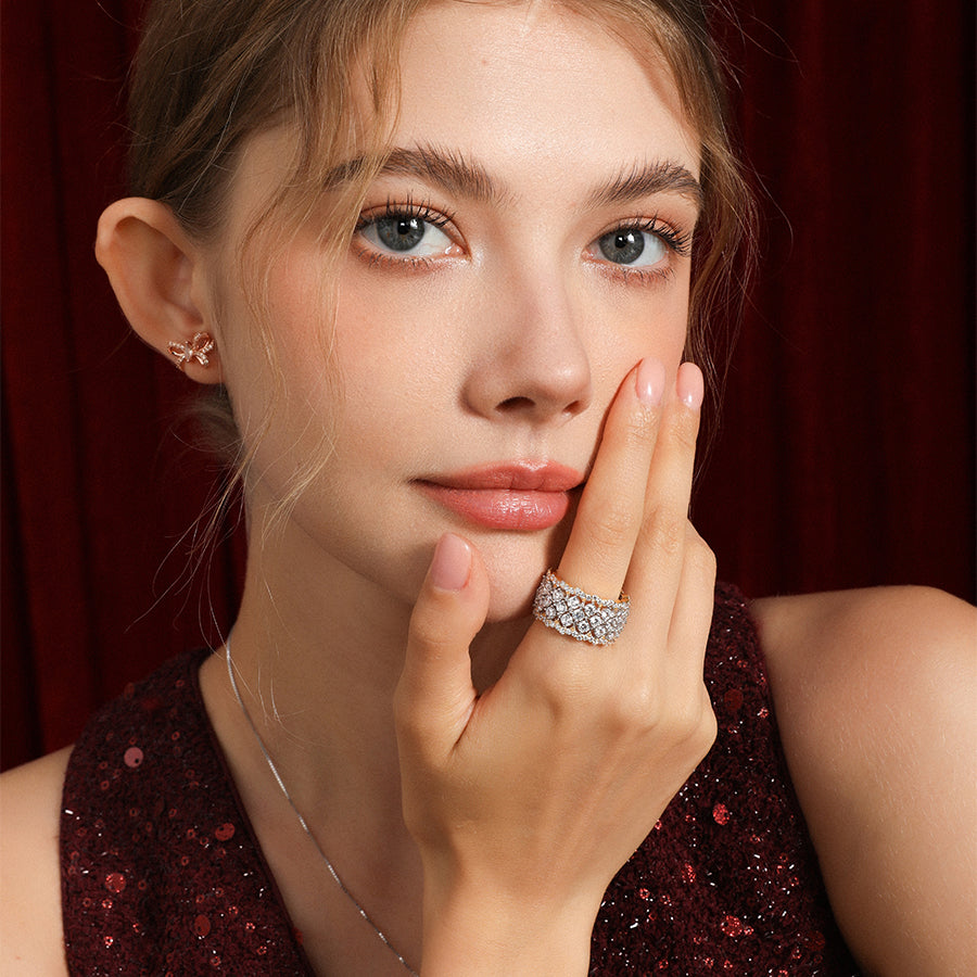 顏色: 玫瑰金 物料: 18K金包925純銀 |MONI人造仿鑽|防敏感 4至6個工作天寄出